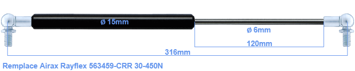 Regarde ce ressort à gaz dans notre configurateur. Ce vérin à gaz est également connu sous 5000563459-CRR, 563459-CRR.00.