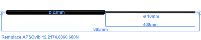 Regarde ce ressort à gaz dans notre configurateur. Ce vérin à gaz est également connu sous AP12.2174.6060.