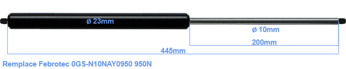 Vérin à gaz de rechange pour Febrotec 0GS-N10NAY0950 950 Newton. Filetage: M8. Marque: Hahn.
